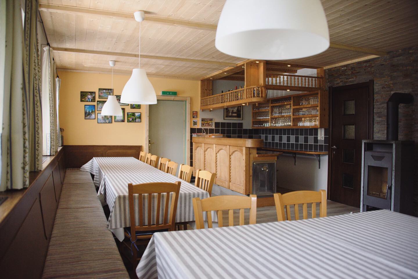 Im Erdgeschoss steht ein sehr großer nett eingerichteter Gastraum (50 Personen) mit Schwedenofen und einer Theke zur Verfügung. Zusätzlich gibt es separate WC's für Damen und Herren.